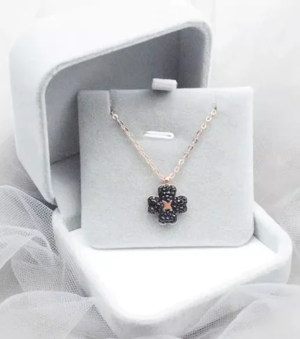 D0009-925純銀黑白花朵玫瑰金項鍊