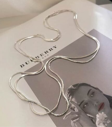 D0039-Meng Vogue外銷歐美高級雙層蛇骨銀色項鍊