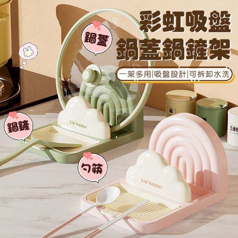 D0037-彩虹吸盤鍋蓋鍋鏟架(2色)