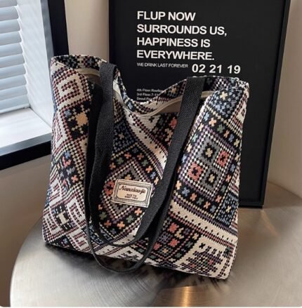 D0044-民族風大容量通勤單肩包敞口款(小號)
