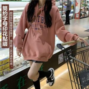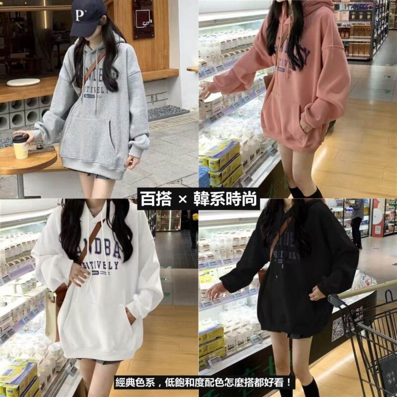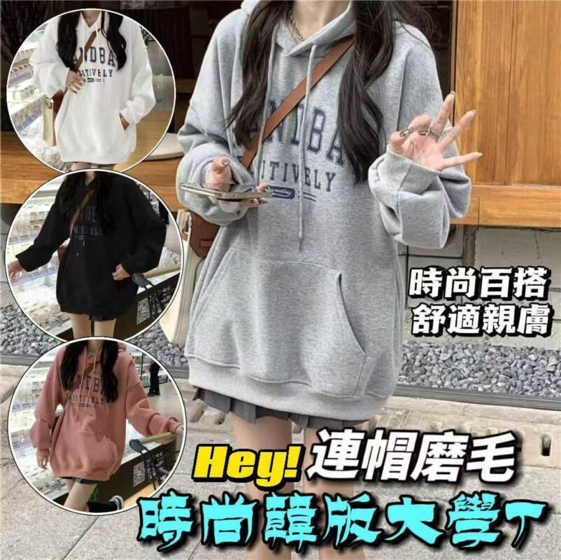 D0164P-連帽磨毛時尚韓版大學T(5色4碼)-預購
