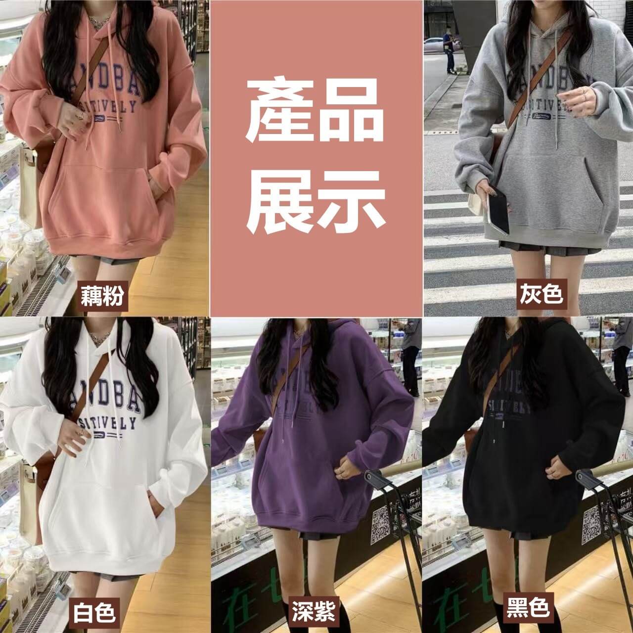 D0164P-連帽磨毛時尚韓版大學T(5色4碼)-預購