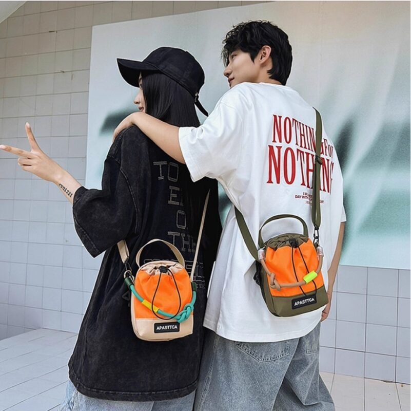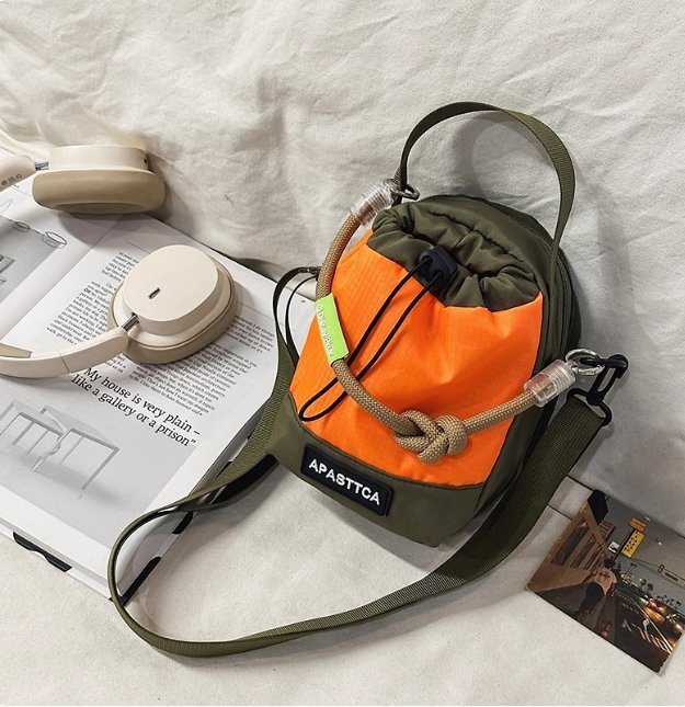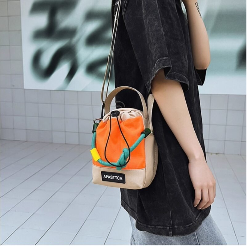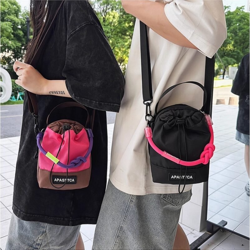 D0022-韓國條紋微笑斜挎水桶包