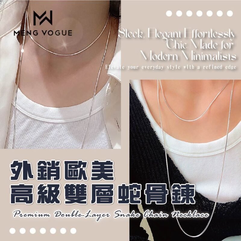 D0039-Meng Vogue外銷歐美高級雙層蛇骨銀色項鍊