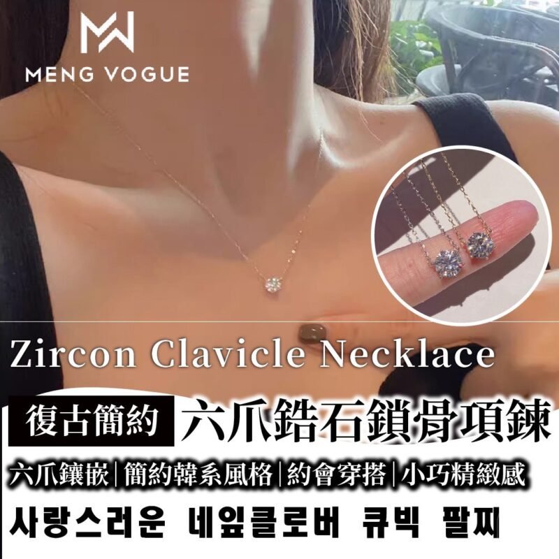 D0041-Meng Vogue復古簡約六爪鋯石鎖骨項鍊