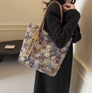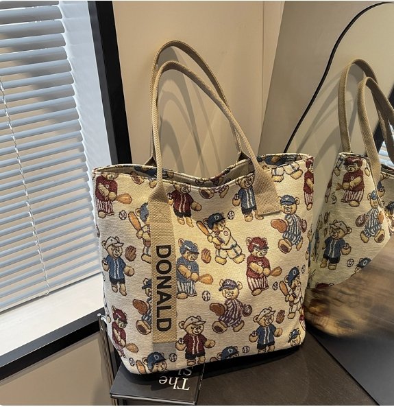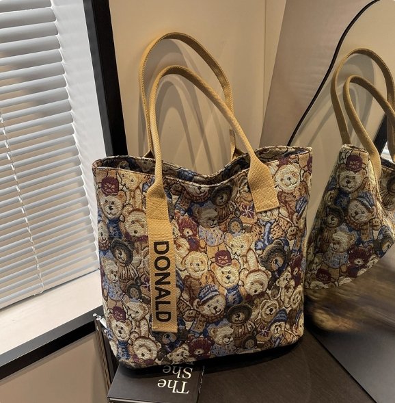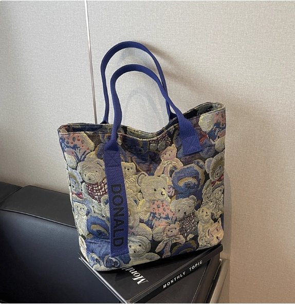 D0047-小熊刺繡帆布休閒手提單肩包 數量