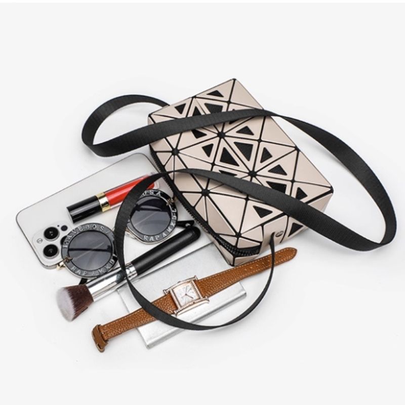 隆重推出這款超吸睛的幾何圖形斜背包!它的獨特菱格紋設計,隨著光線和角度的變化,展現出低調卻不失個性的光澤,絕對讓你成為街頭的焦點!
