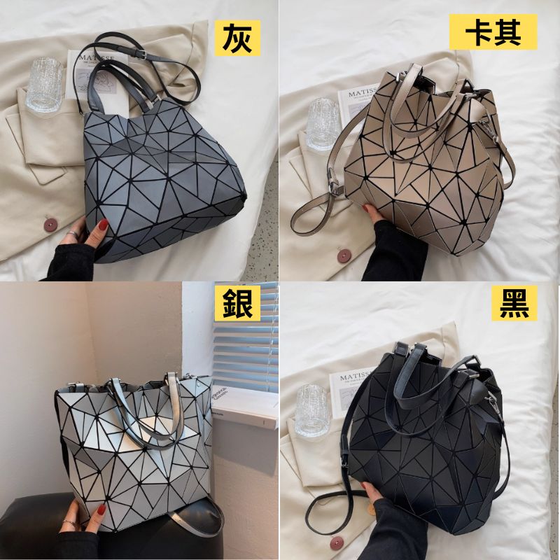 D0092P-鐳射幾何菱形格子單肩手提斜挎包-預購