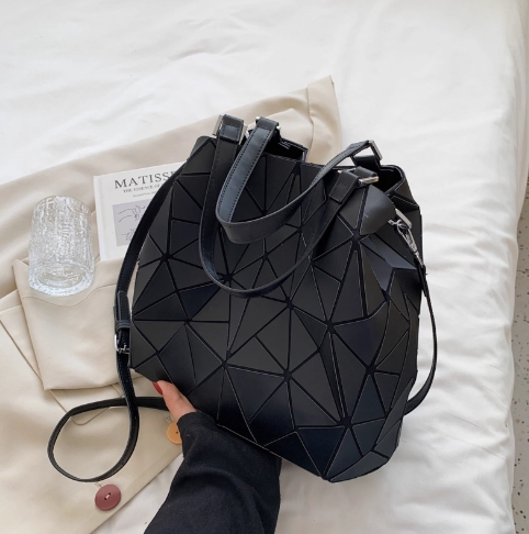 D0092P-鐳射幾何菱形格子單肩手提斜挎包-預購
