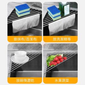 🔺洗完蔬果沒地方瀝水超煩人嗎?來看看這款超實用的水槽瀝水架,讓廚房更整潔、洗碗更輕鬆!三角結構不佔位,靈活利用水槽空間,角落也能派上用場。可折疊卷起隨手攤開使用,收納時捲起超省空間;矽膠包邊耐磨防滑緊貼水槽邊緣、不易滑動,使用更安心;不鏽鋼堅固耐重承重力佳、表面光滑,髒污一沖即淨。