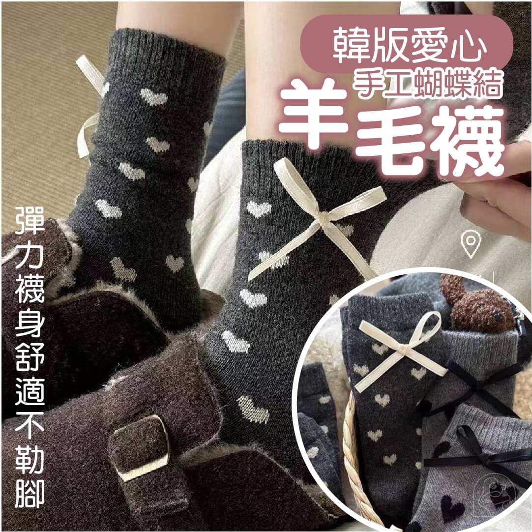 ❄️💖【韓版愛心蝴蝶結手工羊毛襪|冬日甜美小心機】💖❄️